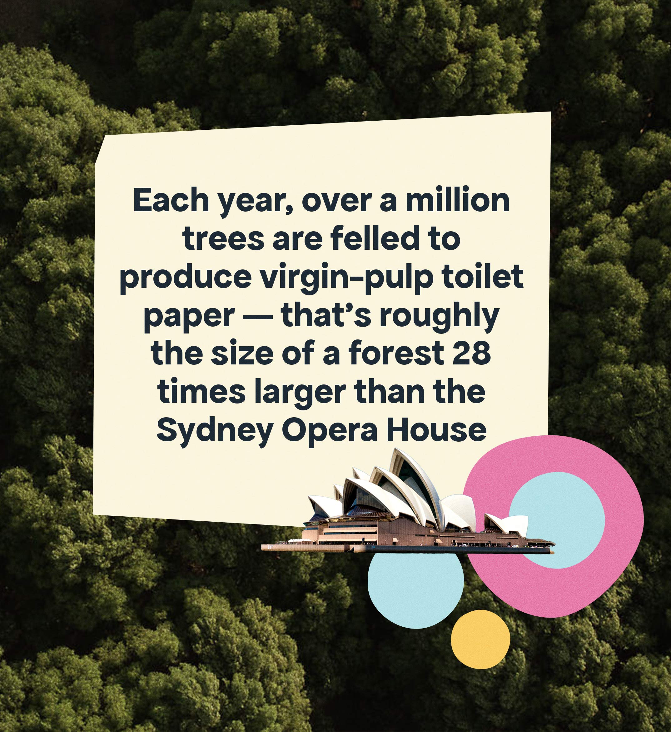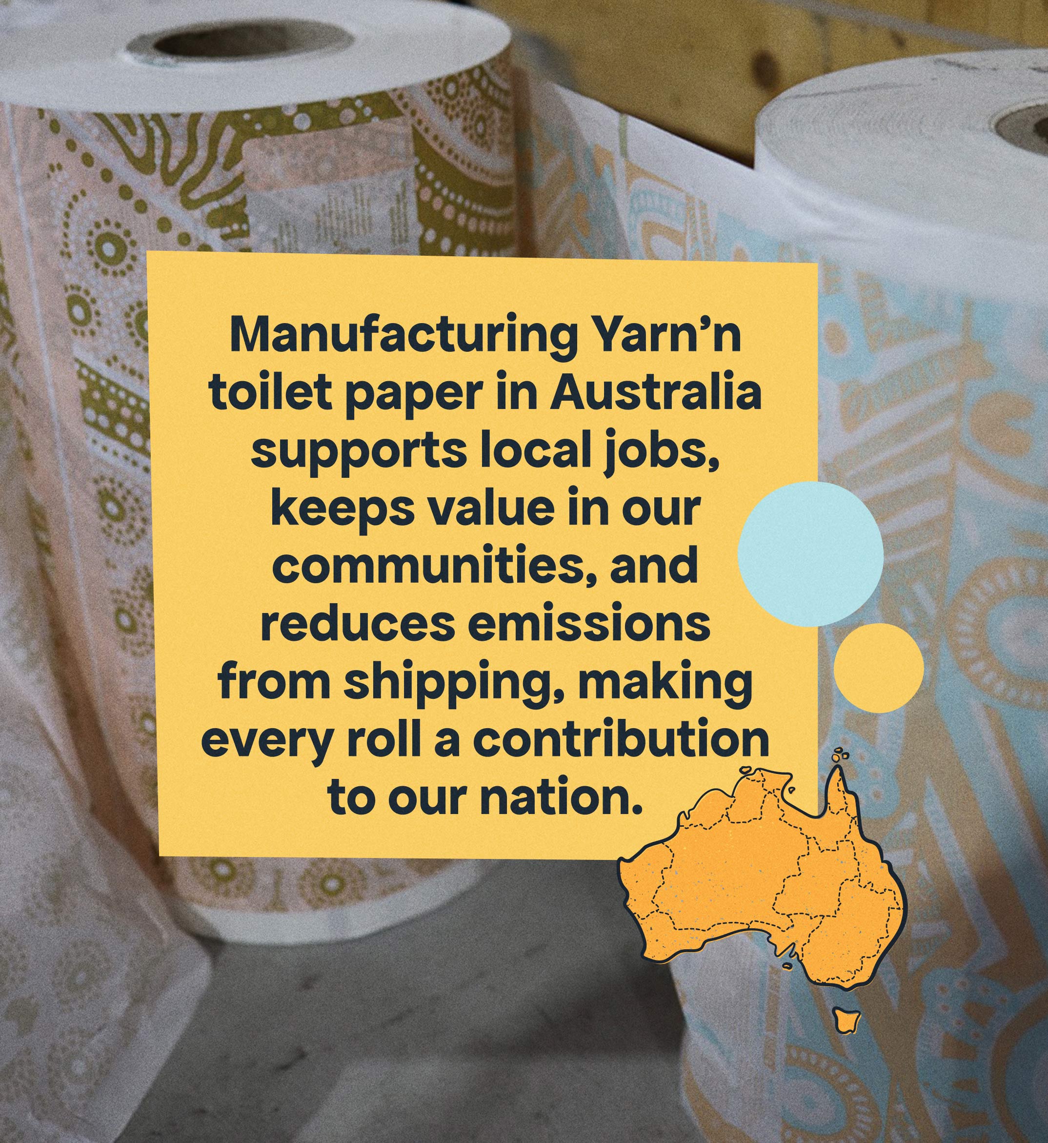 Because our recycled toilet paper is manufactured domestically, it avoids the heavy emissions of international shipping that come with imported or bamboo rolls. Local production keeps jobs and value in Australia while cutting carbon emissions by up to 30% compared to imported alternatives.